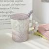 Керамическая кружка с крышкой и ложкой, кружка для ветра, для девочек, высокая ценность, стакан для воды, для пар, офисная кофейная кружка