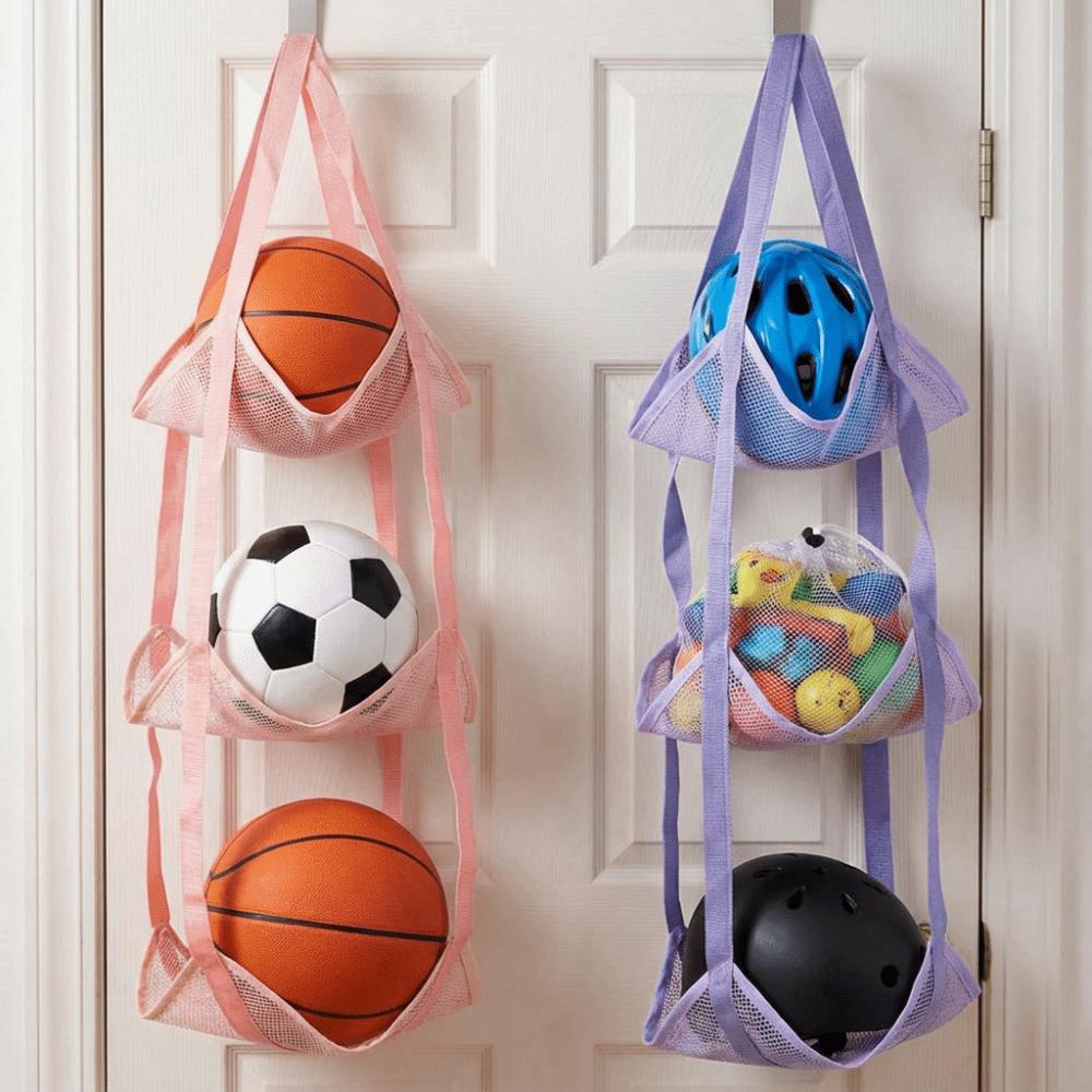 Wall Mounted Sundries Mesh Hanging Bag Large Capacity Mesh Pockets Organizer Basketball