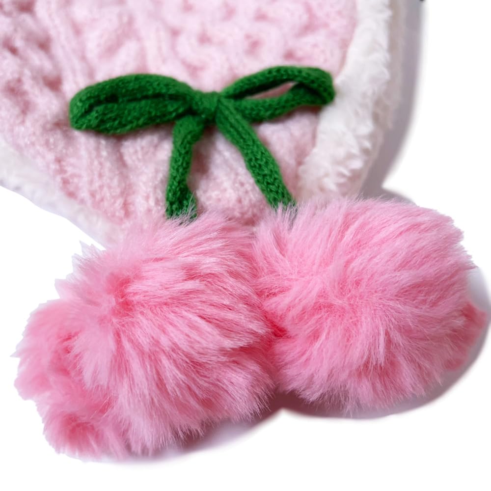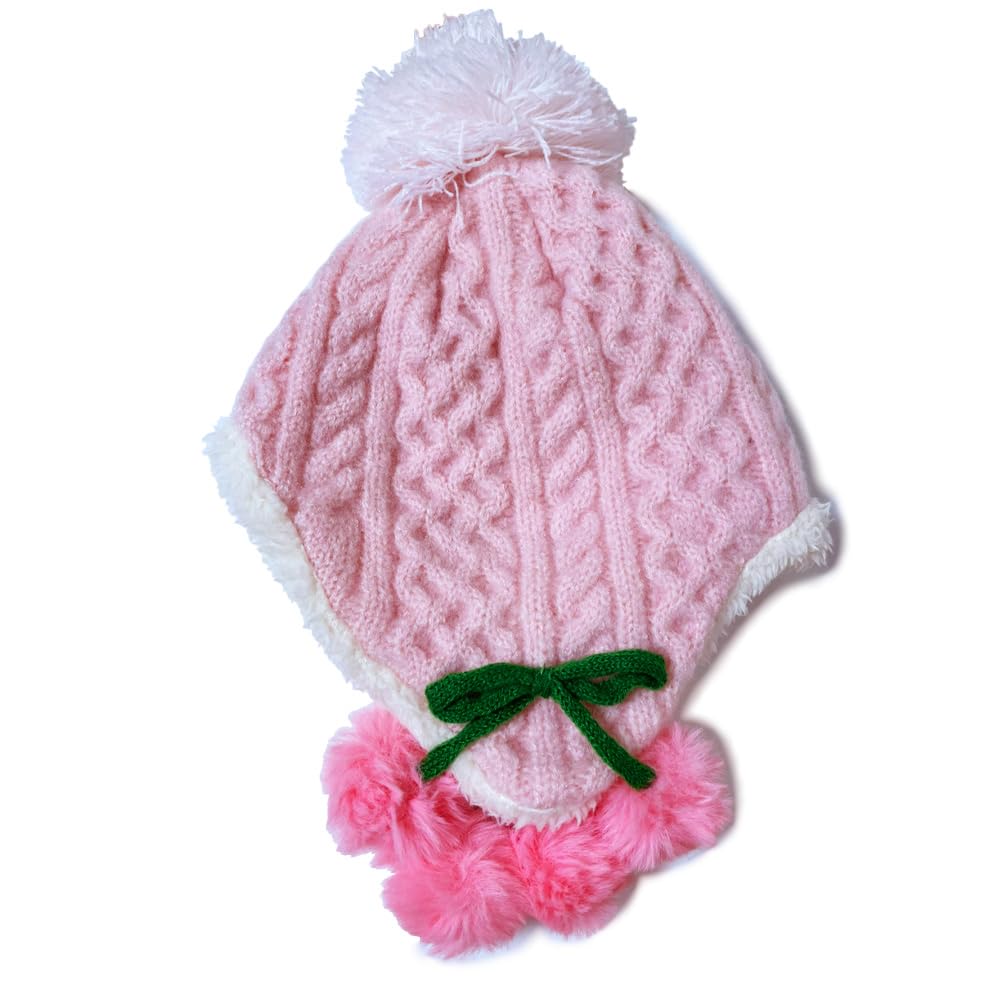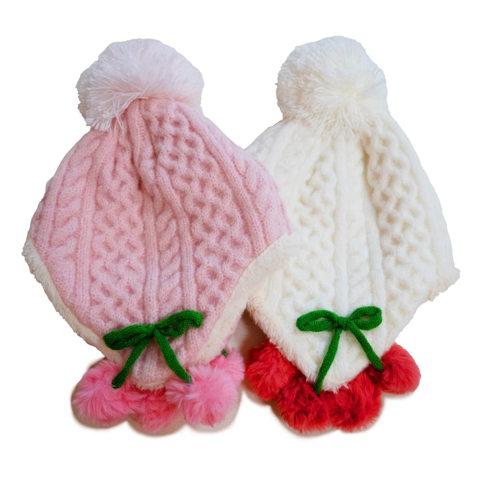 Счастливая вязаная вишенка для мальчиков и детские меховые номерные бобы! Шапка, Дизайн, Девочки, Теплая, (Япония, Размер, 46.0 см, 50.0 см, Розовый)
