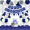 Navy Blue Birthday Confetti Balloons Kit Set 50 Pieces Photography Backdrop Banner Package for Boys Girls Men Women Birthday Party Decorations