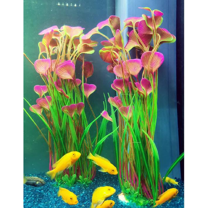 ALEGI Fish Tank Decorations Plastic Plants Large,Aquarium Artificial Plants Decoration Ornament Safe for All Fish-16 inch 2Pcs (Red 2 Pcs)