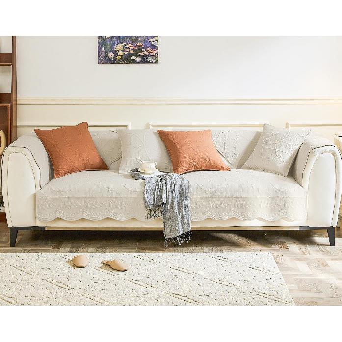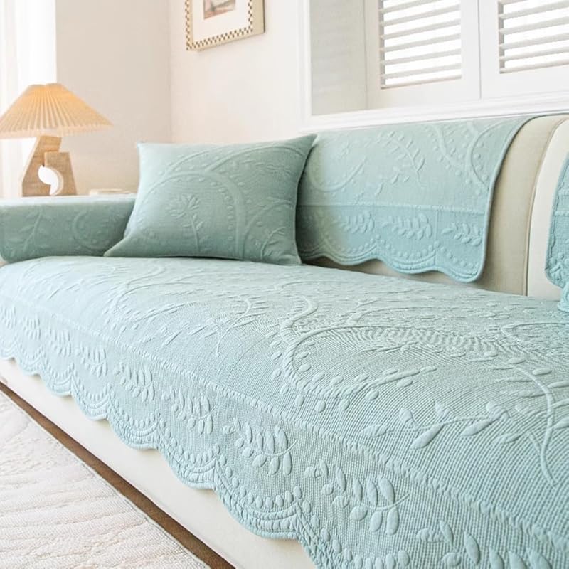 Leaf Floral Cotton Quilted Dog Couch Cover for Sofa Farmhouse Rustic Embroidered Sectional Couch Cover Soft Anti-Slip Sofa Slipcover Furniture