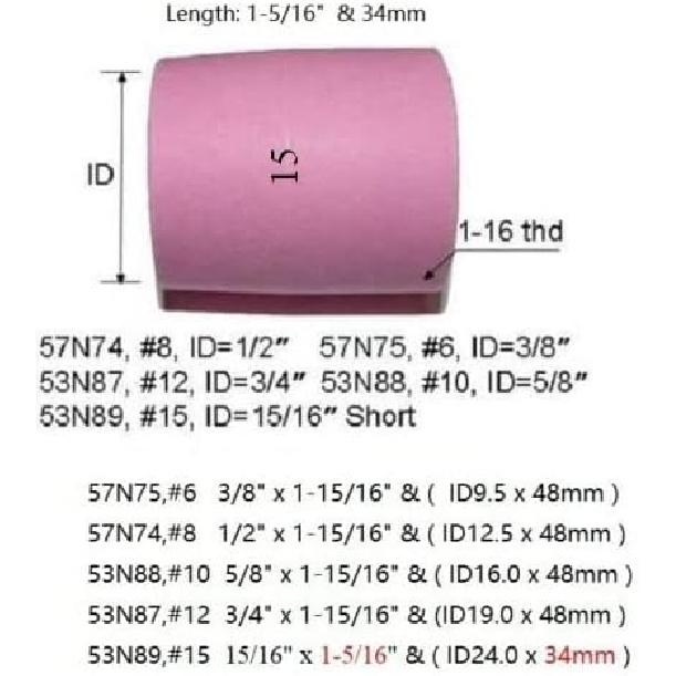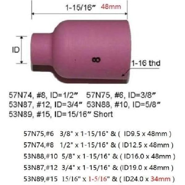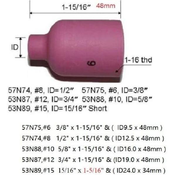 RIVERWELD Сопло с газовой линзой для аргонодуговой сварки Alumina Керамическая чашка Jumbo Большой диаметр 53N87 #12 3/4" 53N88 #10 5/8" 53N89 #15 15/16" 57N74 #8 1/2" 57N75 #6 для