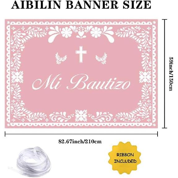 Mi Bautizo Banner Backdrop for Girl Pink Mexican Baptism Party Decorations God Bless First Holy Communion Photography Background Mexican Cielito