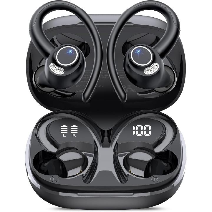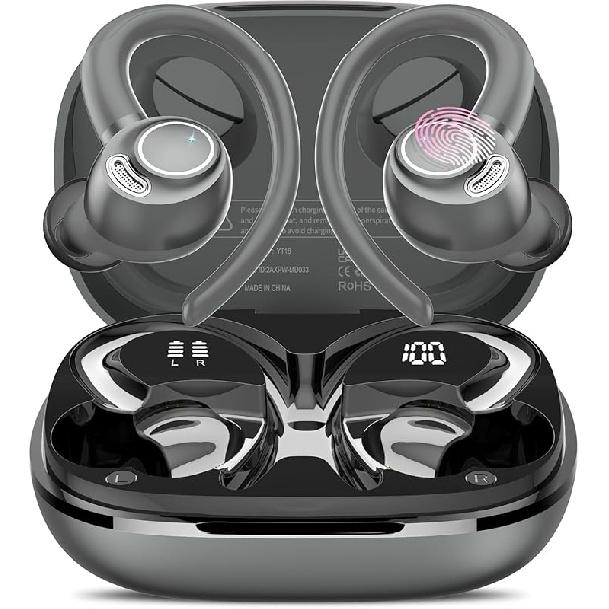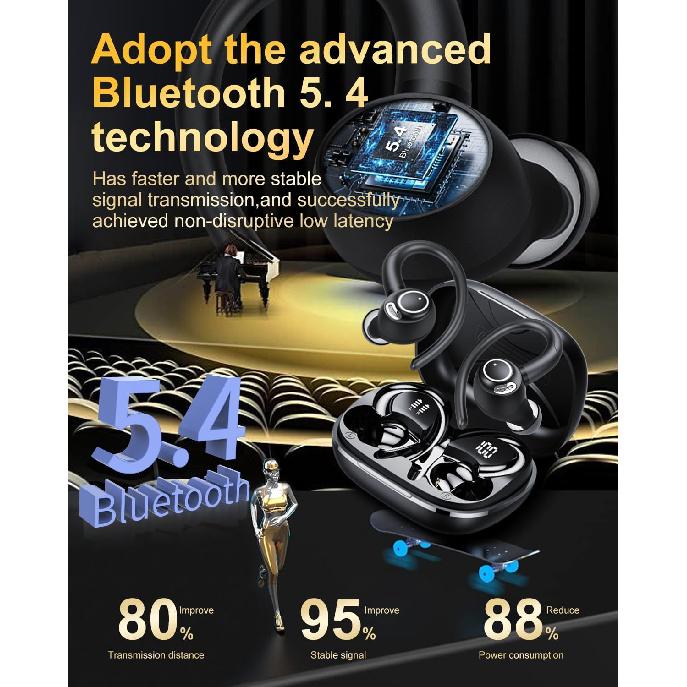 Wireless Earbuds, Bluetooth 5.4 Headphones Sport, Over Ear Buds With ENC Noise Cancelling Mic, 48H, Wireless Earphone With Earhooks, Stereo Deep