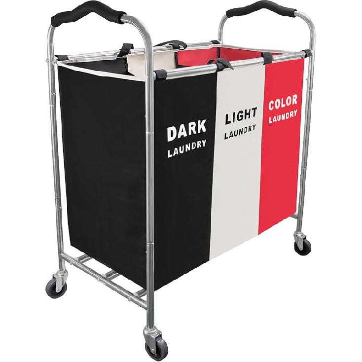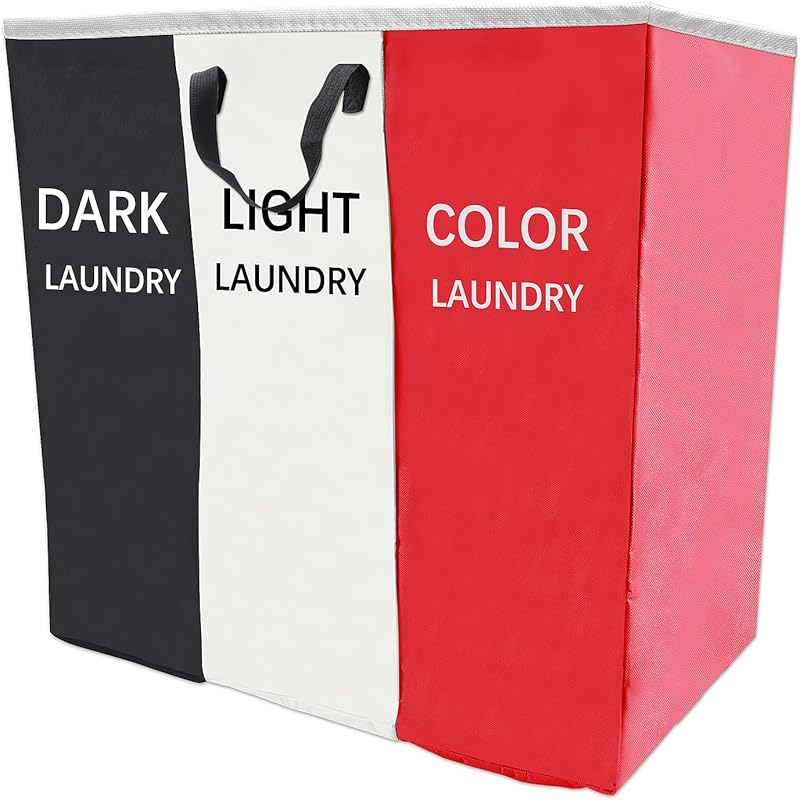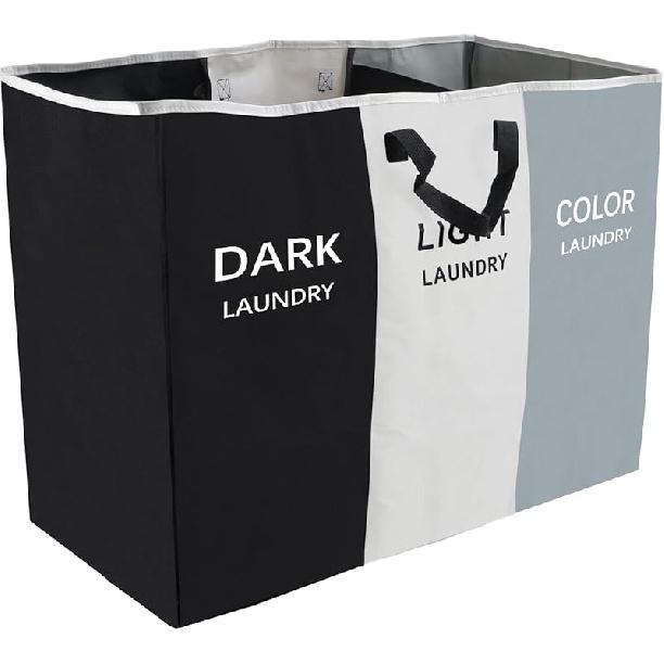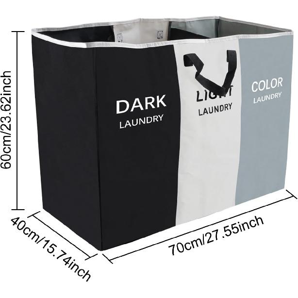 168L Laundry Hamper, Large Blanket Storage Basket Sorter 3 Section Bag Organizer for Dirty Clothes - Toys - Towel,15 X 23 X 28 inch Heavy Duty