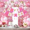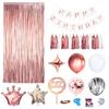Rose Gold Birthday Party Decorations, Happy Birthday Banner, Rose Gold Fringe Curtain, Heart Star Foil Confetti Balloons, Hanging Swirls for Women