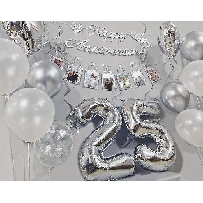 Концико 25-я годовщина Украшения Набор для вечеринки Баннер с фотографиями С юбилеем и воздушные шары, Подвесные спирали для 25-летней свадьбы