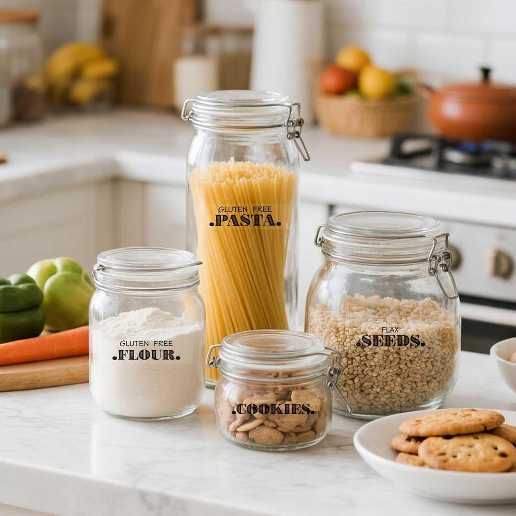 6 Sheets Pantry Labels for Containers, Waterproof PVC Food Storage Labels Self-Adhesive Spice Stickers for Kitchen Organizing