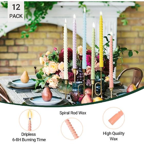🕯️ Подходит для большинства подсвечников для конических свечей: Эти обеденные свечи длиной 10 дюймов с диаметром основания 0,8 дюйма предназначены для большинства стандартных подсвечников, что делает их удобным выбором для вашего следующего собрания.