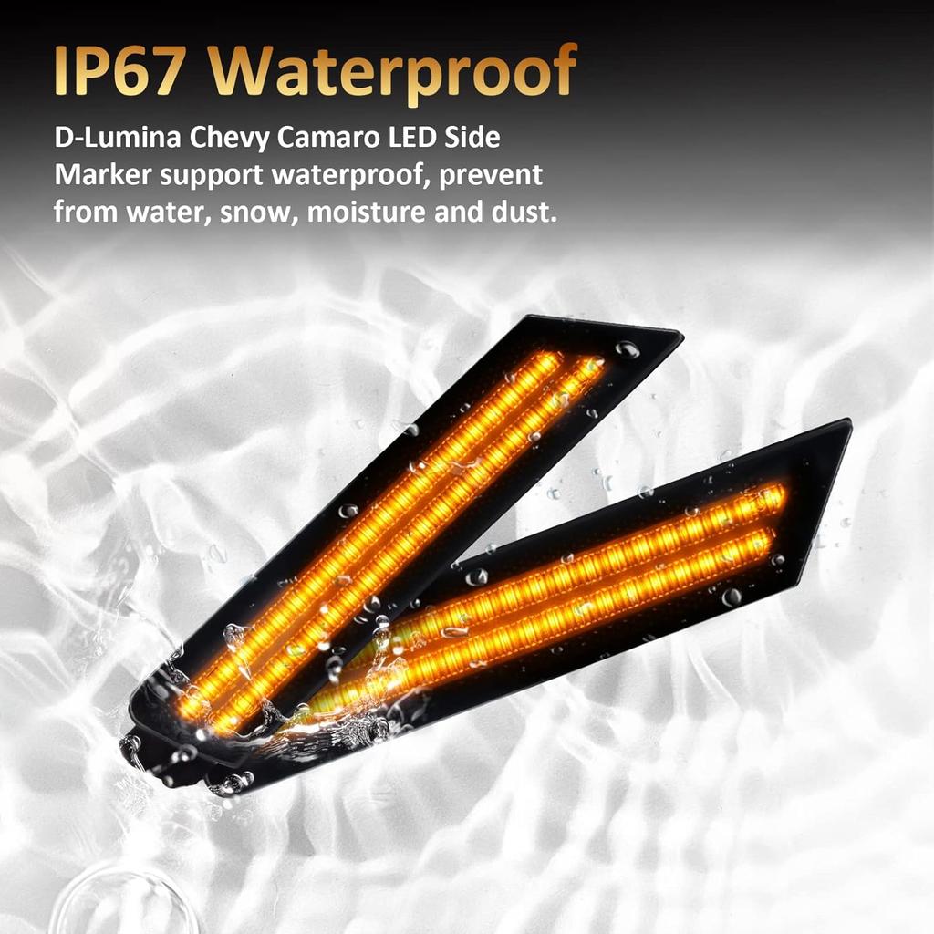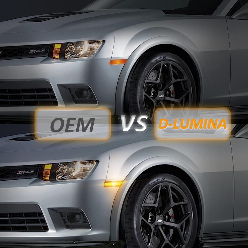 D-Lumina Боковые габаритные огни Chevy Camaro Дымчатая линза для Camaro 2010 2011 2012 2013 2014 2015, Желтый габаритный огонь переднего бампера Тонированный боковой отражатель,