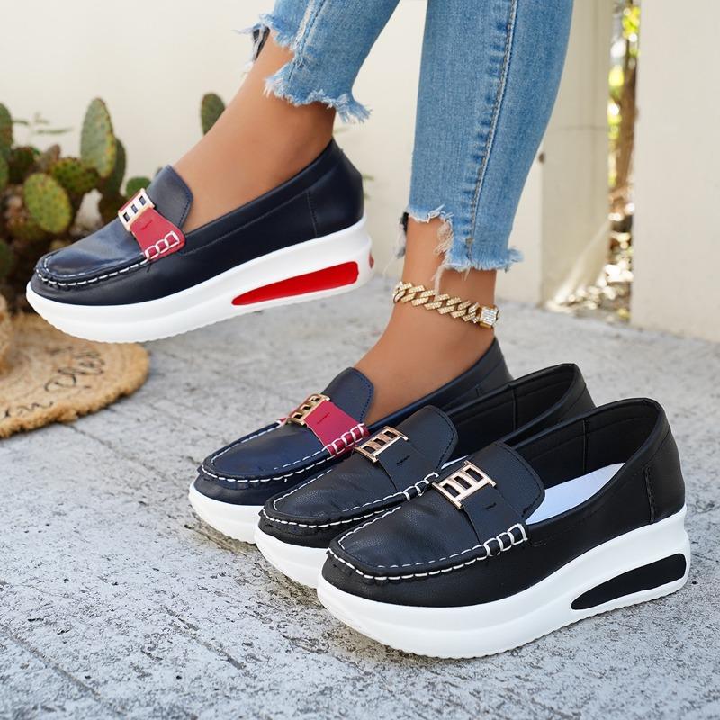 Женские лоферы на платформе широкой полноты - Повседневные слипоны с металлической пряжкой для весны, Модная обувь на массивной подошве