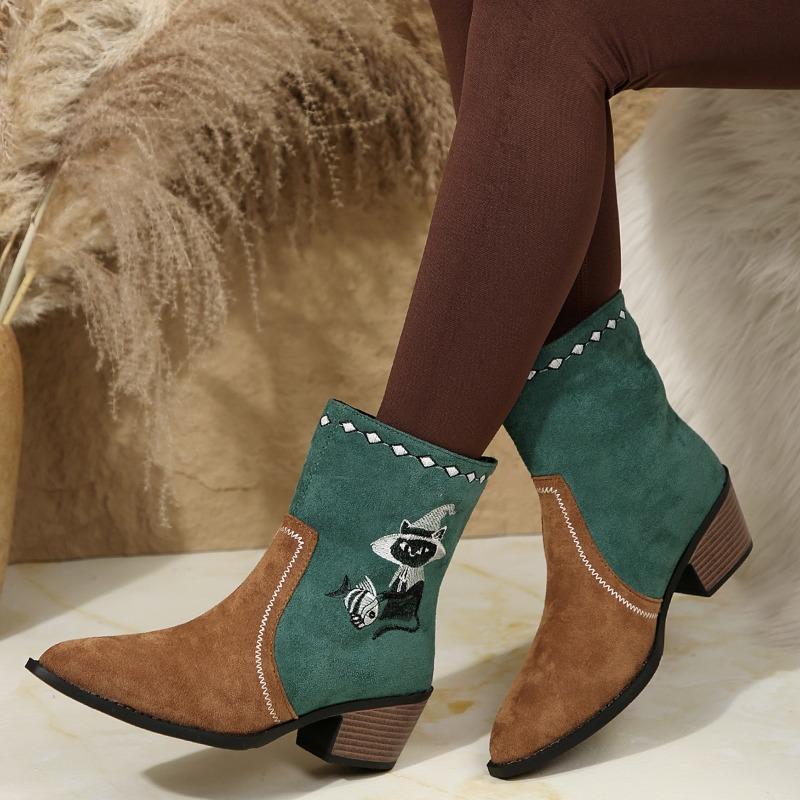 Женские вышитые ковбойские сапоги широкой полноты, ботильоны до щиколотки с V-образным вырезом и острым носком, женские ботильоны на массивном каблуке в западном стиле
