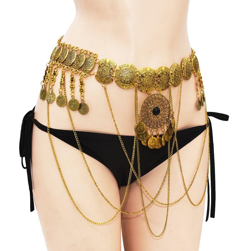 Coins Bead Women Waist Chain Tassel Dai Style Belts Ethnic Style Metal Belt Costumes Accessories