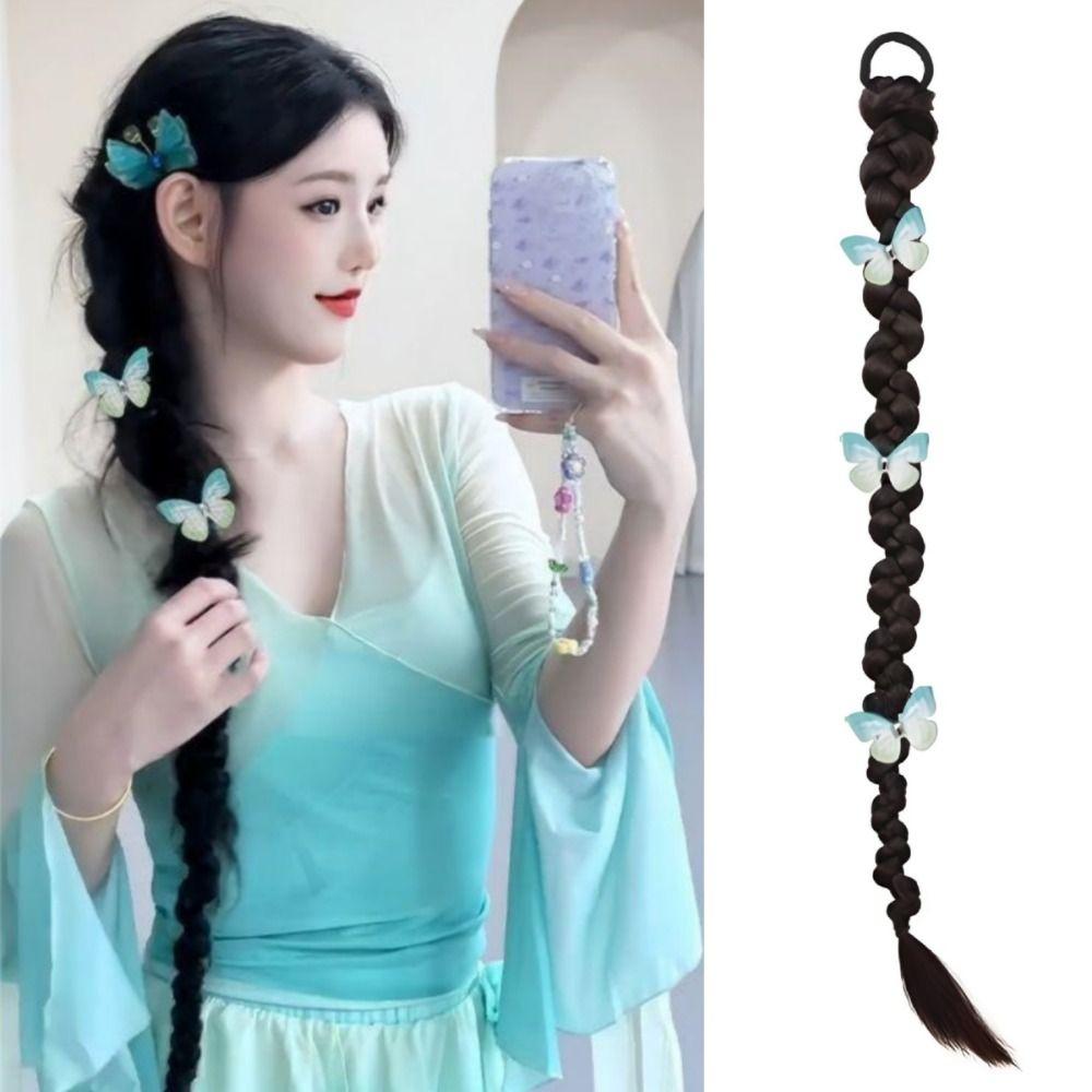 Заколка-бабочка Длинная скрученная плетеная резинка для волос в виде конского хвоста Боксерская плетеная коса-парик для женщин