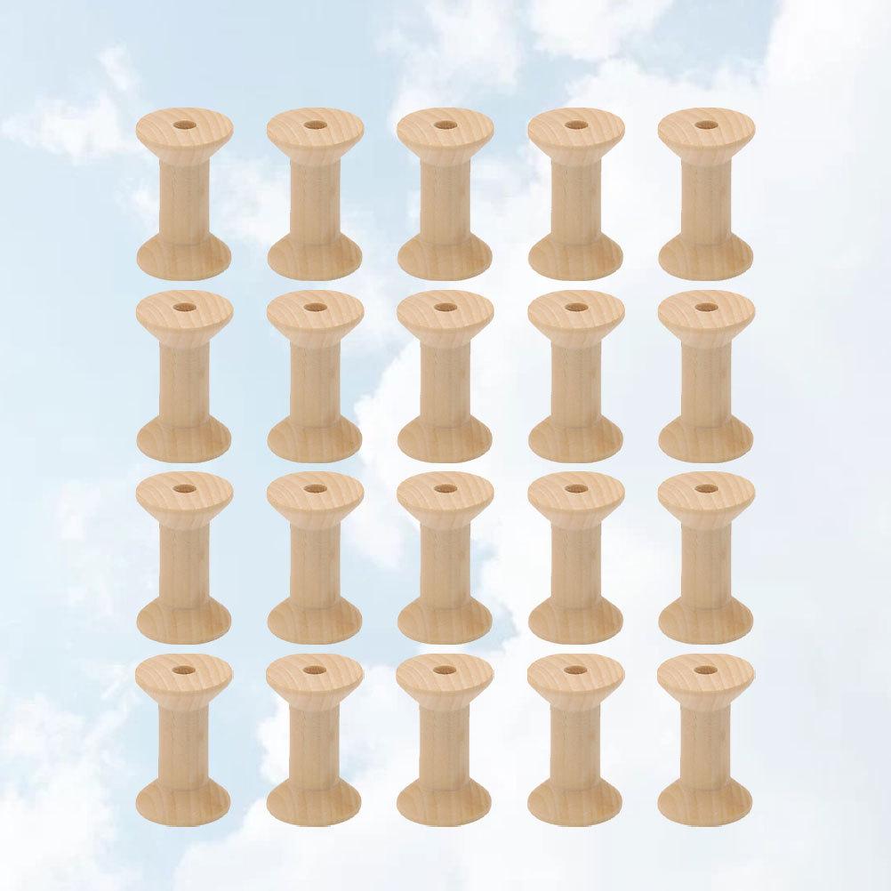 20Pcs Vintage Wood Spools Unfinished Light Yellow 30x22mm DIY Sewing Thread Twine Bobbin Craft Supplies for Weaving