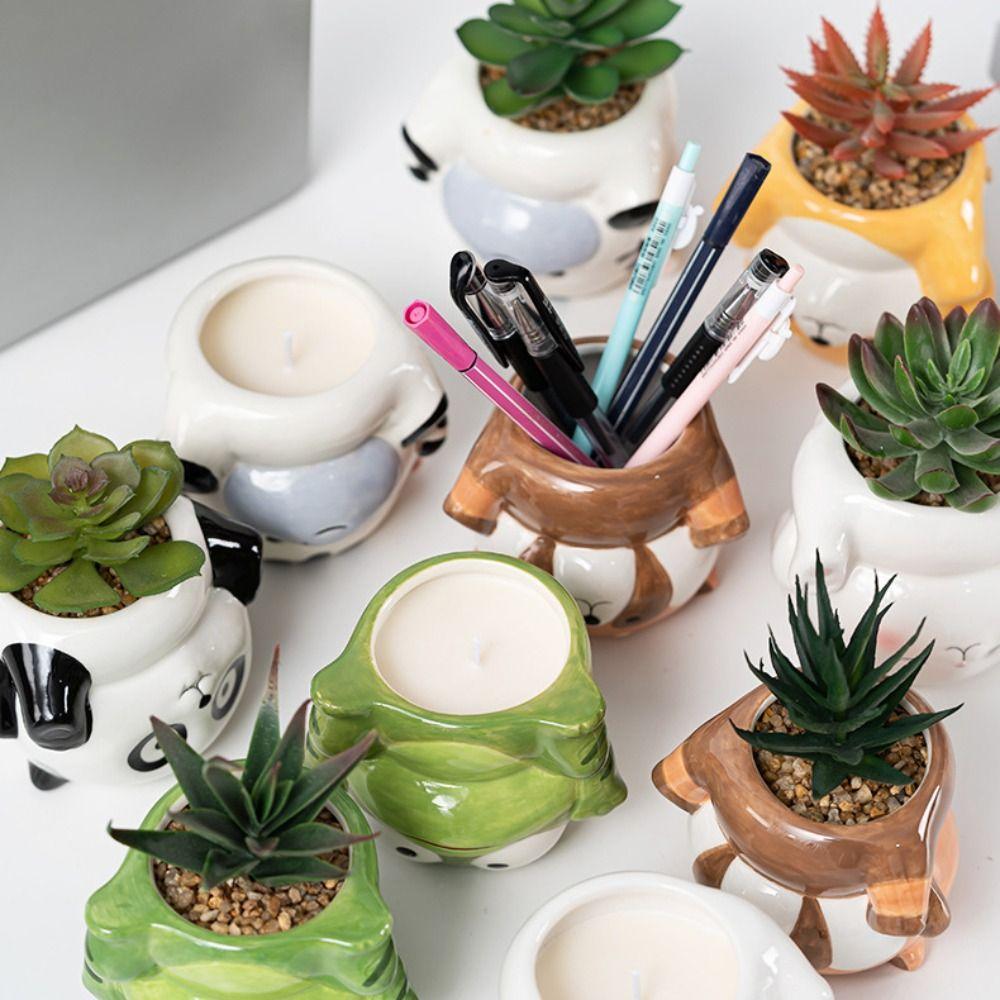 Милый керамический горшок для растений с дренажным отверстием, мультяшный горшок в виде животного, подставка для растений, маленькое настольное украшение для дома, фермерского дома