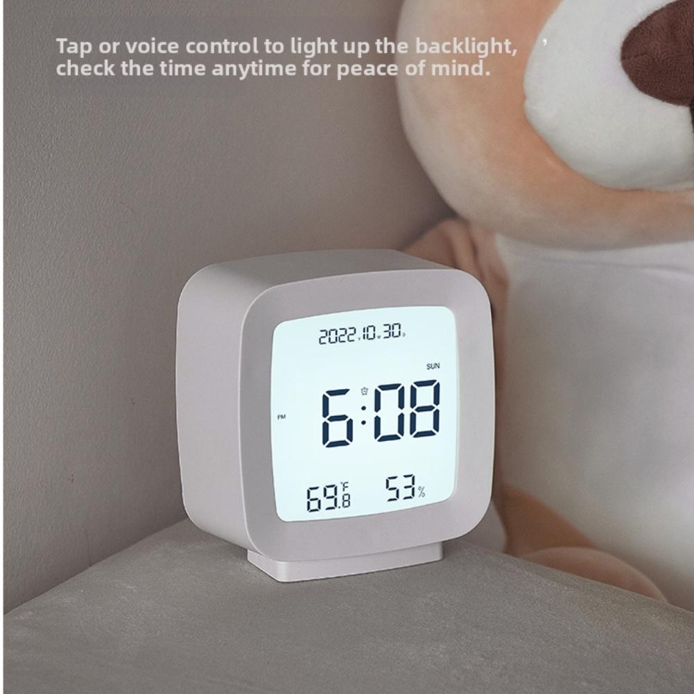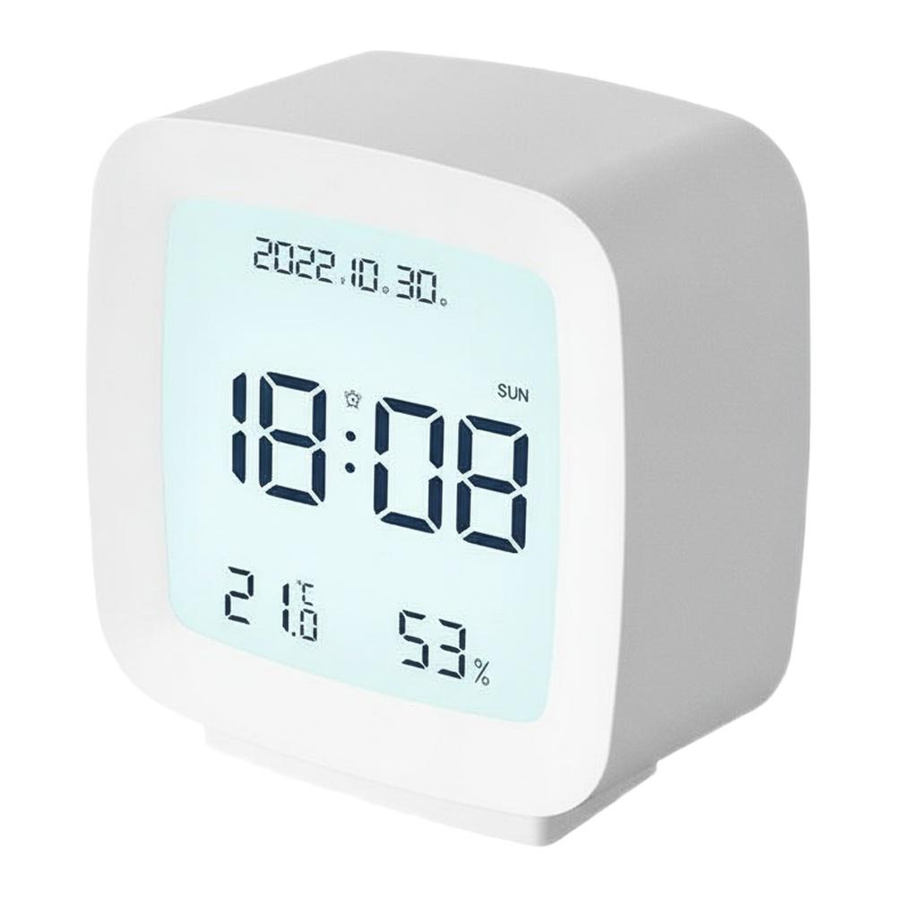 Portable LCD Alarm Clock for Students Compact Design with Thermometer Humidity Monitor and Flexible Time Format 12 or 24 Hours