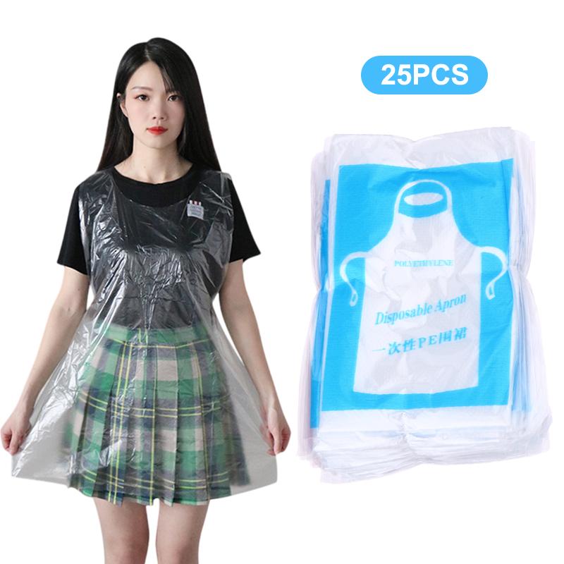 25 шт. Одноразовые фартуки Прозрачный пластиковый художественный фартук Водонепроницаемый для взрослых детей Рисование Вечеринка Готовка Домашняя работа Пикник Поделки своими руками