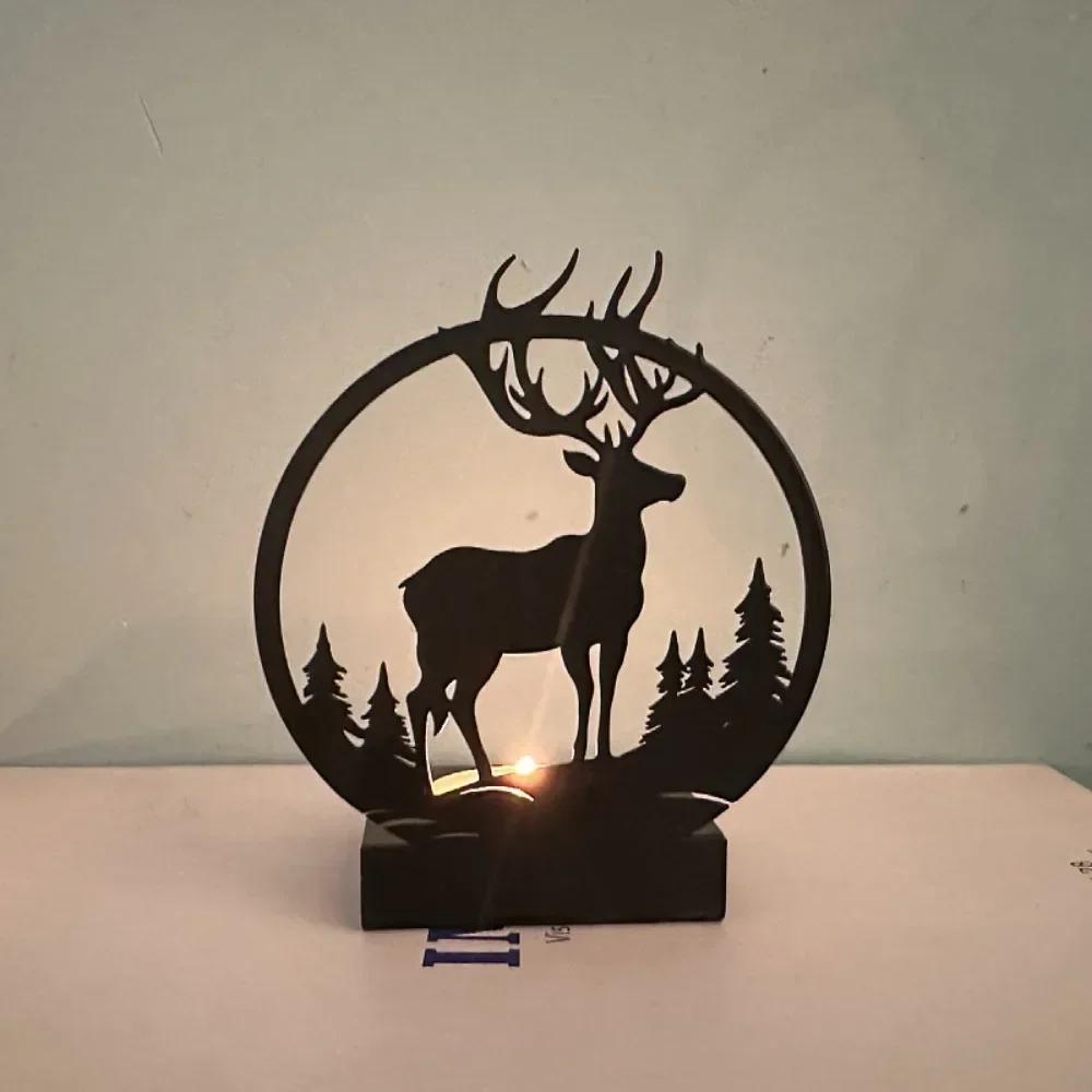 Creative Ins Style Metal Ornaments Candle Holders Black Iron Elk Valentine's Day Luminous Decorative Crafts Miniatures