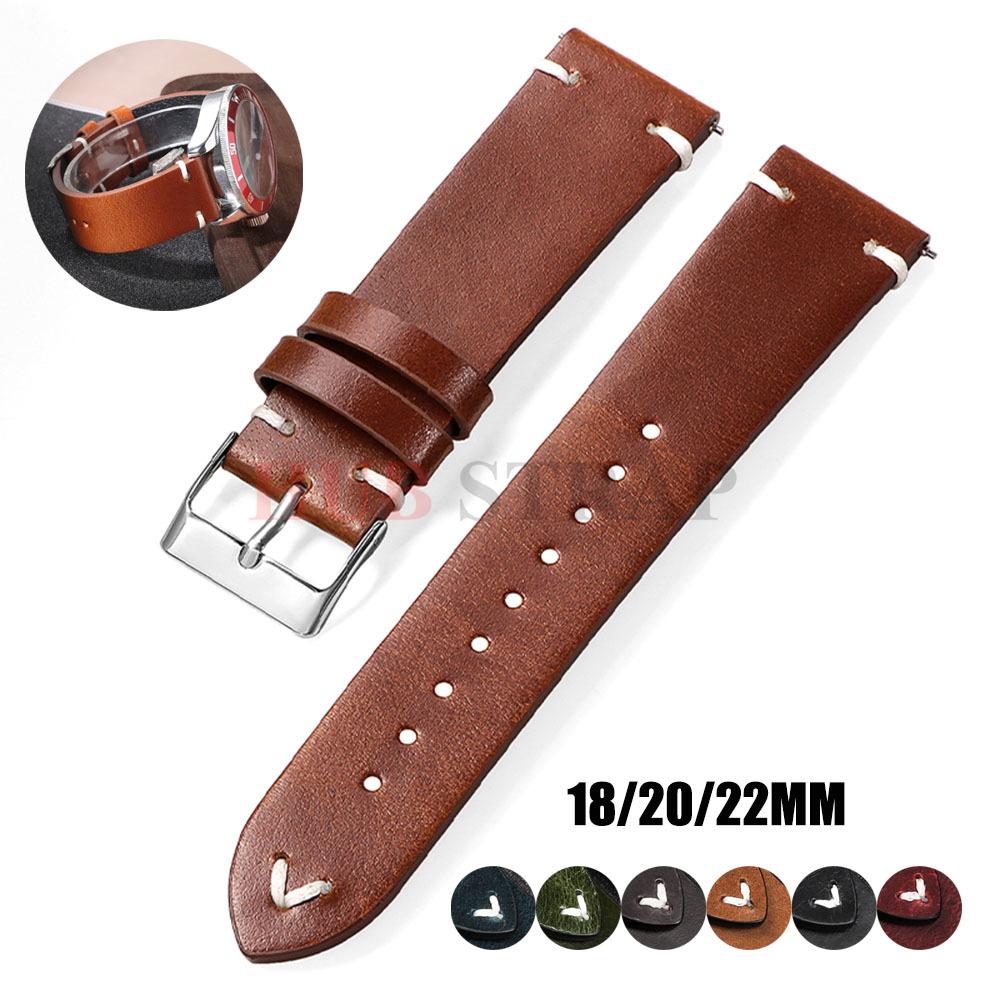 18 мм 20 мм 22 мм Винтажный Ретро Кожаный Ремешок для Часов с Масляной Восковой Обработкой Универсальный Ремешок для Запястья Прошитый Ремешок из Коровьей Кожи Бизнес для Ремешка Часов Seiko