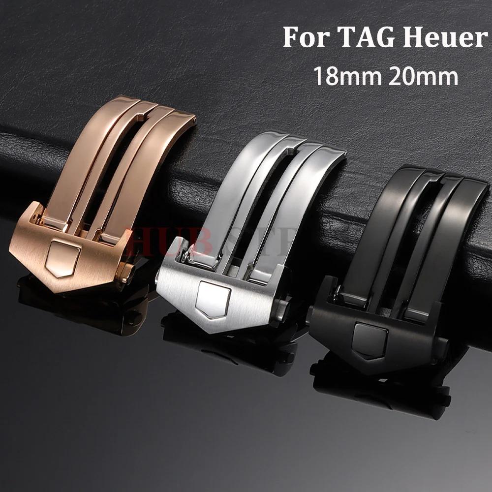 Для ремешка часов TAG Heuer Пряжка 18 мм 20 мм Нержавеющая сталь Двойные кнопочные застежки для кожаного силиконового ремешка Складная застежка