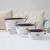Double Handles Ellipse Iron Flower Pots Retro Style Garden Planting Tool Storage Bucket Florist Home Furnishing Vase Decoration