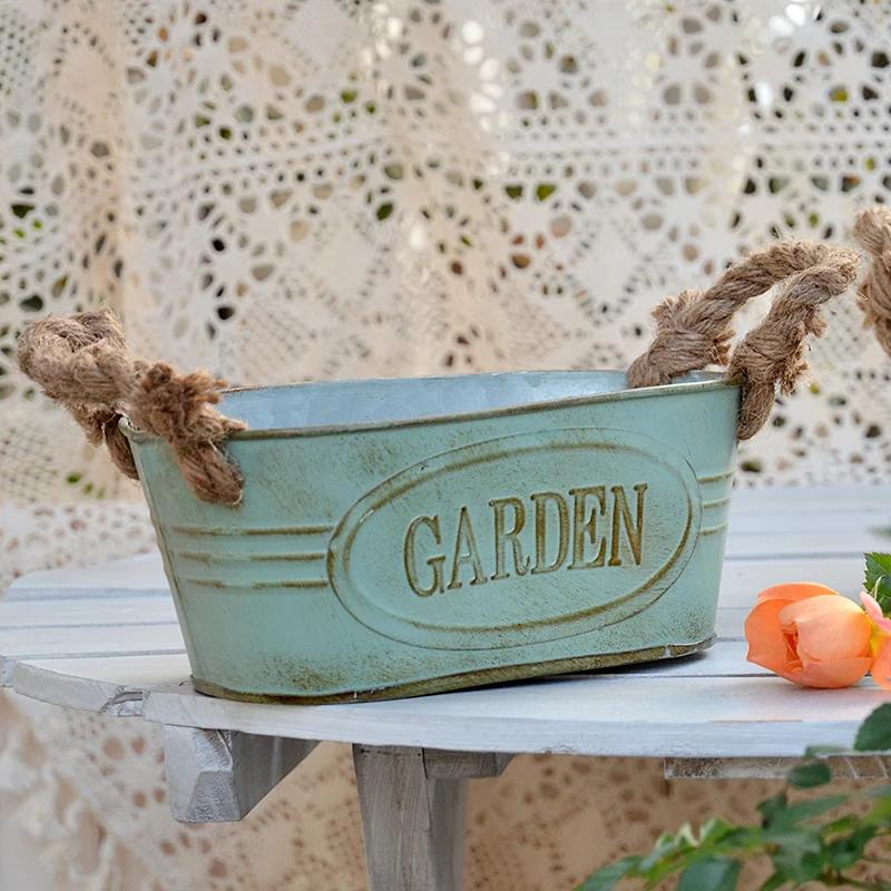 Double Handles Ellipse Iron Flower Pots Retro Style Garden Planting Tool Storage Bucket Florist Home Furnishing Vase Decoration — купить товар онлайн с бесплатной доставкой по всему миру!