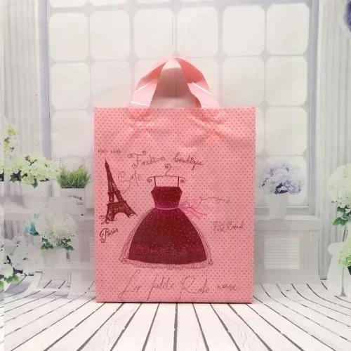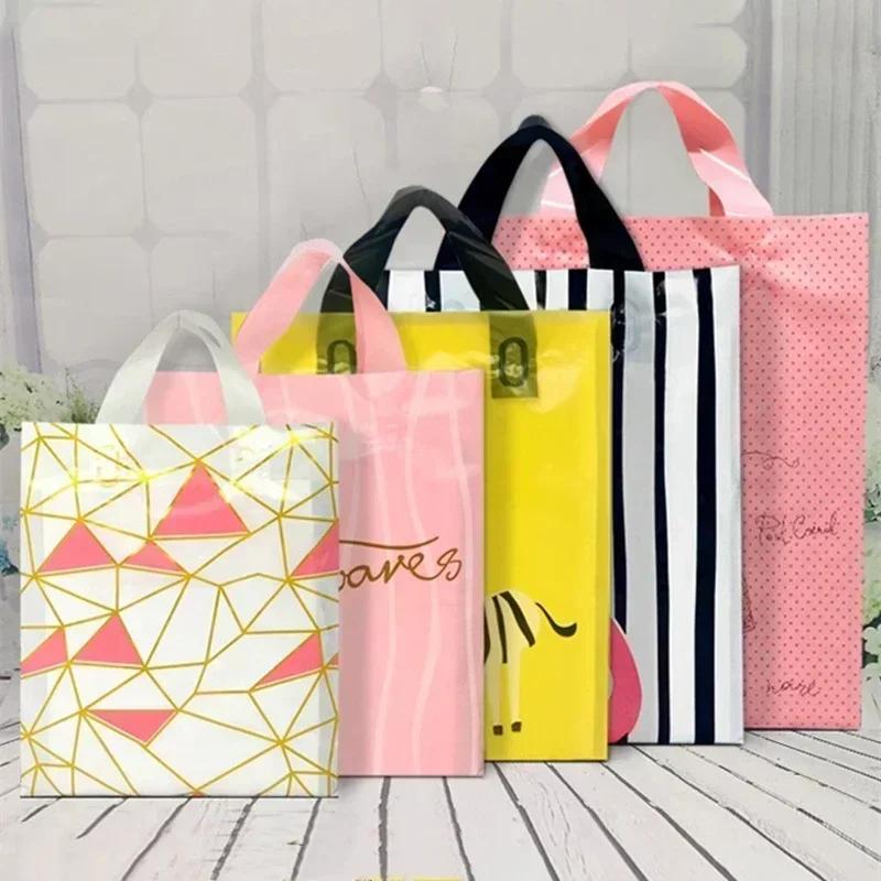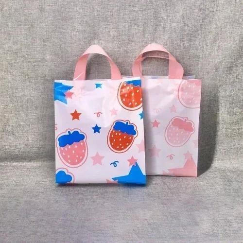 Vertical Plate Handle Plastic Bag Thick Large Size Clothing Store Packing Gift Storage Portable Package Cartoon Bags 50pcs