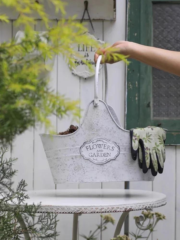 Металлическая кованая корзина для цветов, предметы интерьера, хранение инструментов во дворе, подвесная корзина, сад, балкон, европейский ретро-стиль, украшение