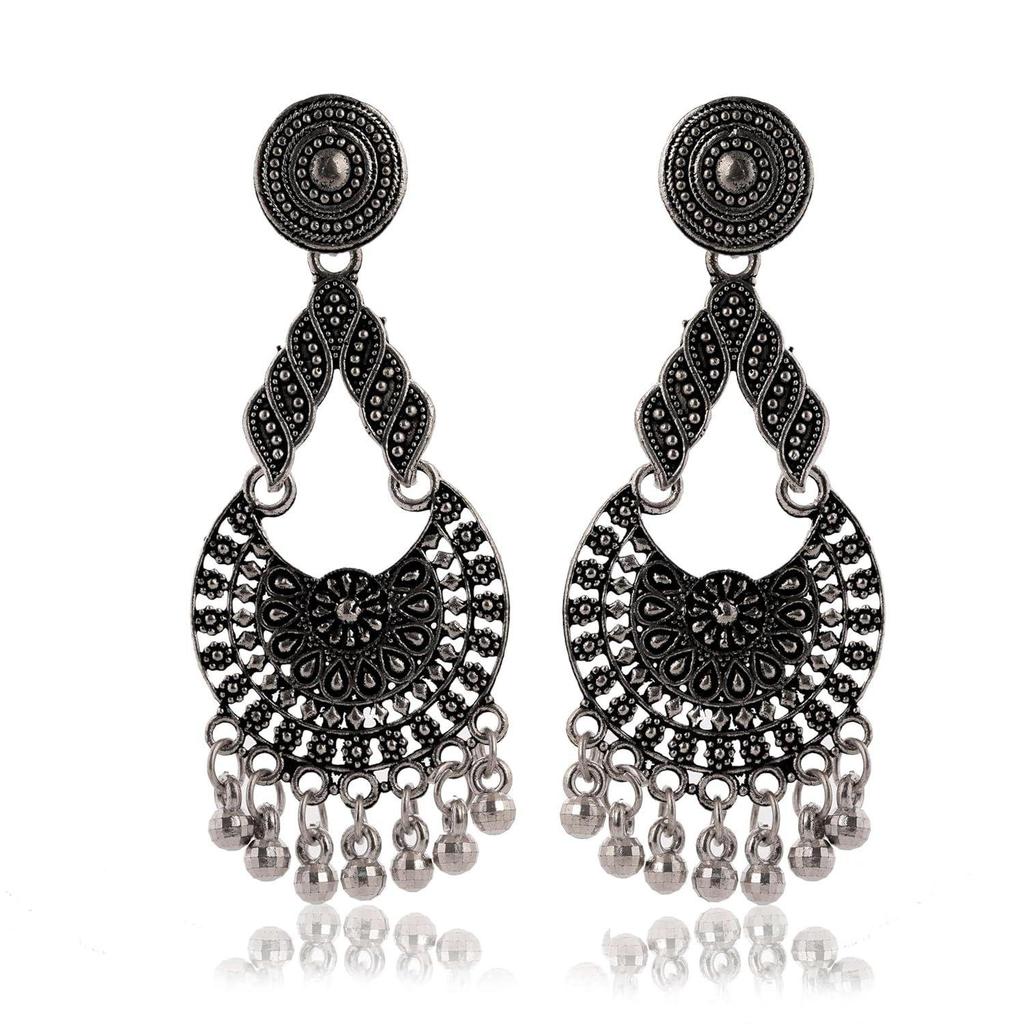 Handmade Traditional Jhumki with Moon and Flower Motif Chandbali Design Ethnic Jhumki Earrings for Women and Girls
