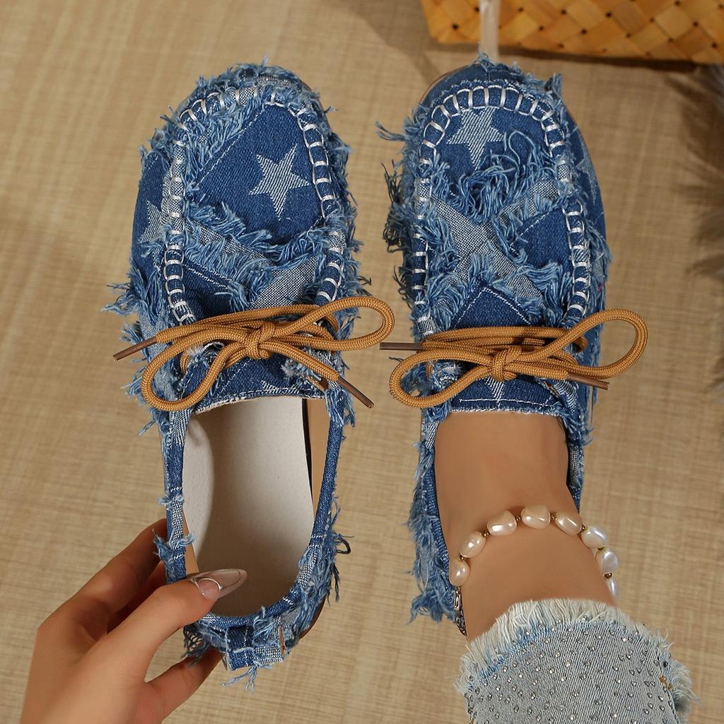 Джинсовые низкие кеды на шнуровке 2025 Осень Новинка Большие размеры Холщовые спортивные туфли для женщин