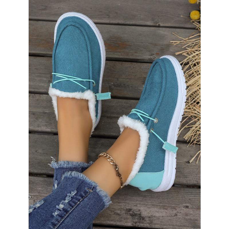 Женские хлопковые туфли больших размеров - 5 цветов, на плоской подошве, на флисовой подкладке, утолщенные, замшевый верх, пушистый воротник, теплый стиль слипонов