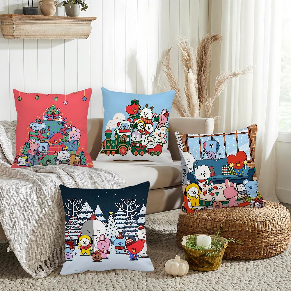 Cartoon B-BT-T-21 Christmas Pillow Case Home Cushion Cover Suitable For Office Sofa Car Suitable For All Seasons