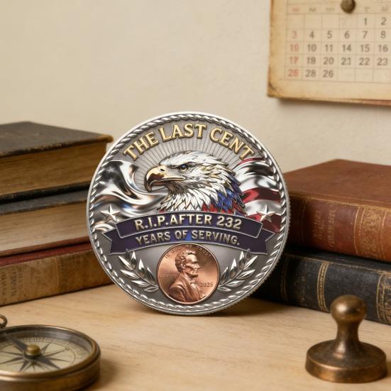 Символическая тема и историческая дань: Эта монета знаменует официальный вывод из обращения монеты в один цент после 232 лет (1793-2025), под торжественной темой "Покойся с миром". ПОСЛЕДНИЙ ЦЕНТ." Печальный дизайн выражает глубокое уважение к многолетнему вкладу монеты в историю американской чеканки. Это служит пронзительным напоминанием об окончании эпохи, одновременно прославляя непреходящее национальное наследие.