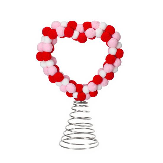 Celebrate love and romance with this heart tree topper, designed to enhance any festive setting. Featuring a charming heart-shaped outline adorned with colorful plush balls in red, pink, and white, it adds a soft, layered texture that is both visually appealing and warm to the touch.