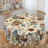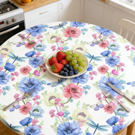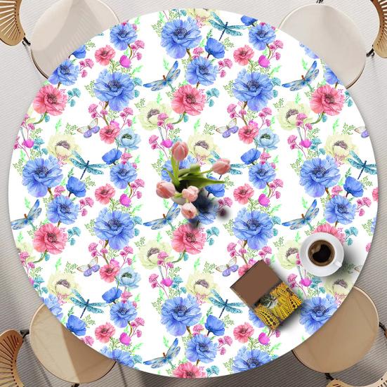 Надежный эластичный край для весеннего декора: Имеет эластичный бортик, который плотно облегает круглые столы, предотвращая скольжение, смещение или падение во время еды или собраний.; украшенный очаровательными цветочными узорами, он добавляет классический, деревенский штрих как повседневной трапезе, так и праздничным весенним случаям.