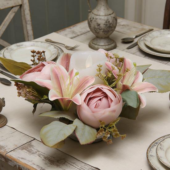 Этот искусственный венок из подсвечников выполнен из высококачественных пластиковых и шелковых цветов, которые долговечны, выглядят реалистично и устойчивы к выцветанию и повреждениям.. Размер 30 см (11,81 дюйма) внешний диаметр и 8 см (3,15 дюйма) внутренний диаметр идеально подходит для большинства свечей-столбиков..