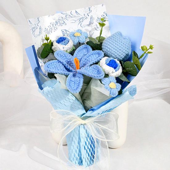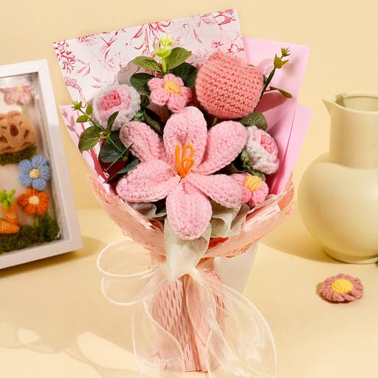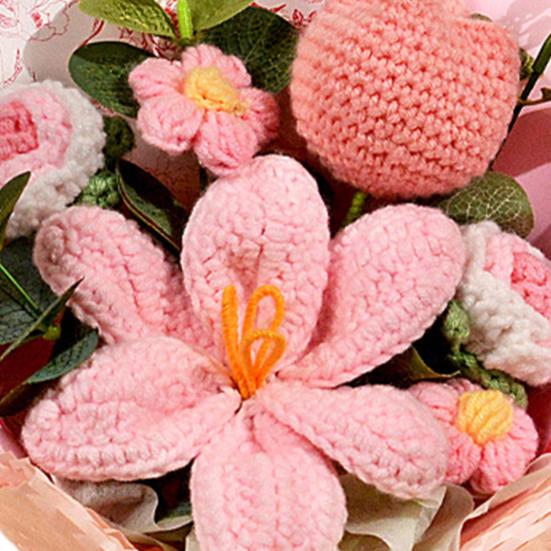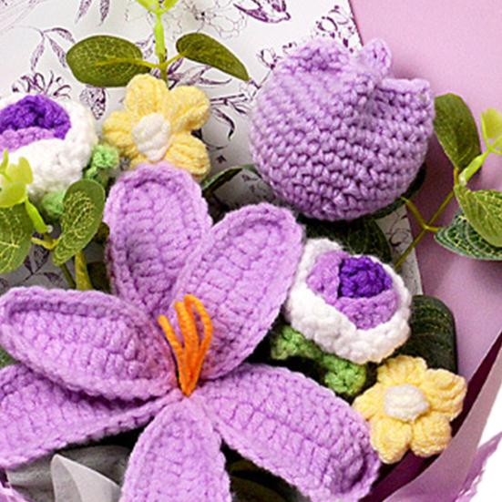 Каждый цветок тщательно связан крючком вручную из мягкой пряжи, демонстрируя нежную текстуру и трехмерное мастерство, которое излучает тепло и артистизм.. Реалистичные имитированные зеленые листья подчеркивают естественный вид букета и его многослойность.. В отличие от живых цветов, этот долговечный букет символизирует вечную любовь и привязанность, идеален для годовщин, дней рождения и Дня святого Валентина.