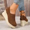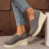 Женские элегантные туфли-слипоны на массивной танкетке, молния сзади, платформа, имитация джутовой подошвы, дышащие, черные, всесезонные, повседневные, нарядные