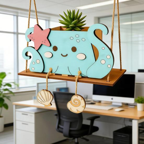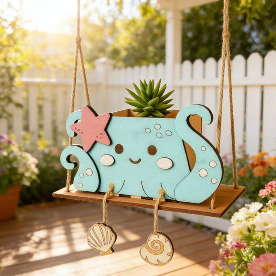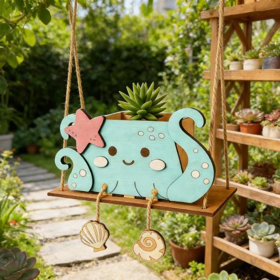 Его уникальный качающийся дизайн позволяет легко повесить его, создавая очаровательный декоративный акцент, который оживляет комнаты или открытые площадки.. Идеальный в качестве продуманного подарка для детей, он поощряет творчество, позволяя им украшать свои собственные цветочные горшки.. Прочный и стильный, этот держатель для кашпо сочетает в себе функциональность с эстетической привлекательностью для всех любителей растений.