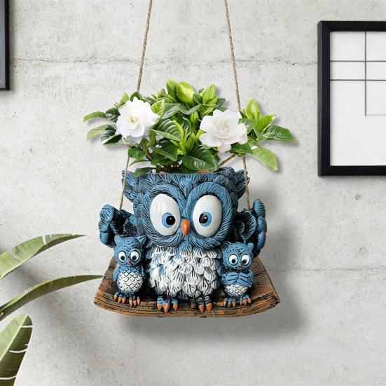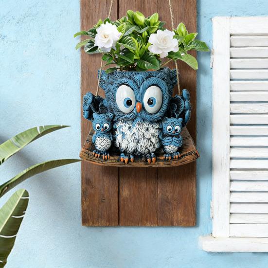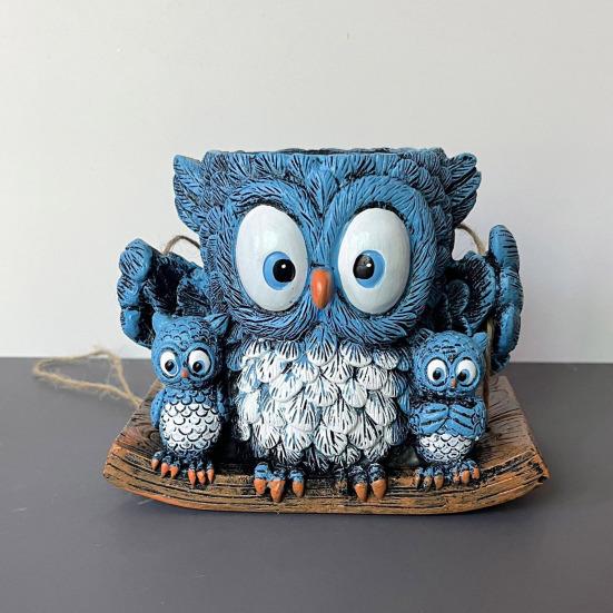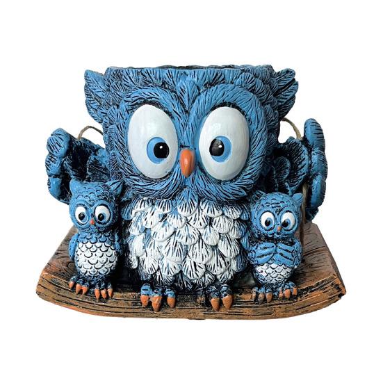 Креативная форма на семейную тематику: Этот уникальный цветочный горшок выполнен в форме большой синей совы, держащей двух сов поменьше, и все они сидят на имитации деревянной доски.. Дизайн передает тепло и единение, вызывая игривое, но при этом художественное настроение.. Его живая форма добавляет характер и очарование любому пространству, привлекая как детей, так и взрослых.