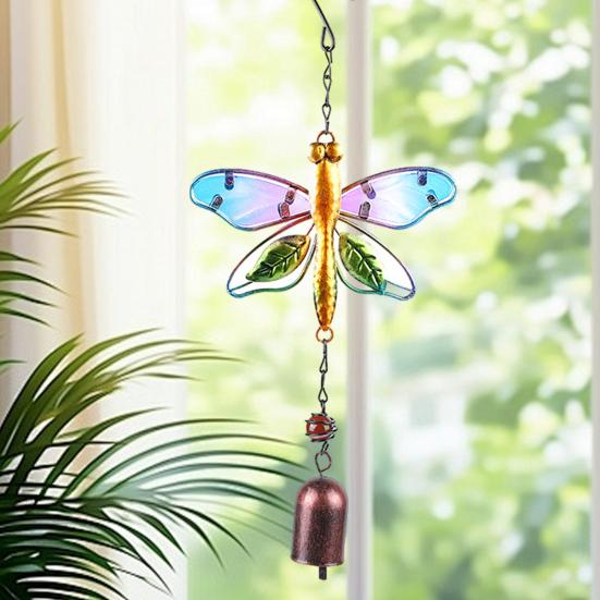 Витражный колокольчик ветра для улицы ручной работы Стрекоза Колибри Металлический колокольчик ветра для улицы в помещении Дом Сад Патио Двор Оконное украшение