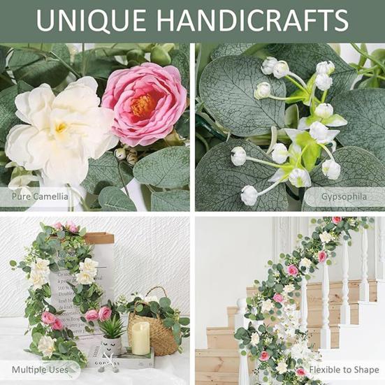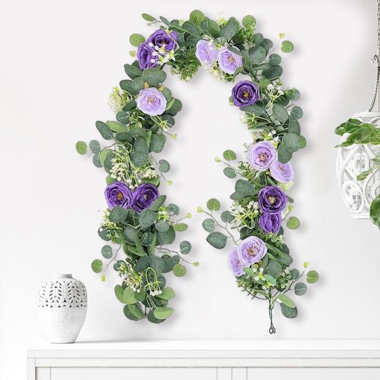 Универсальное декоративное использование: Идеальная для различных мероприятий, эта гирлянда может быть использована для украшения вечеринок, свадеб, домашних интерьеров или офисных помещений.. Его гибкая конструкция позволяет легко сочетать с другими цветочными композициями для создания индивидуального декора.