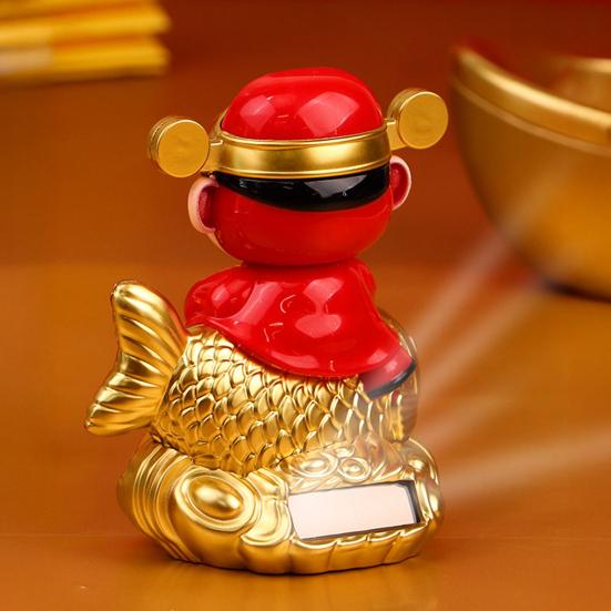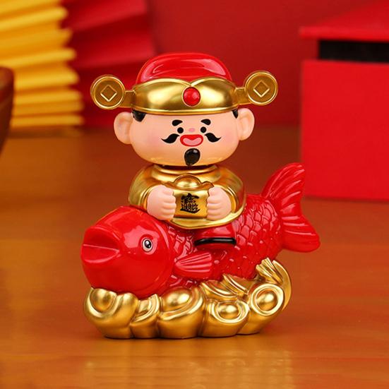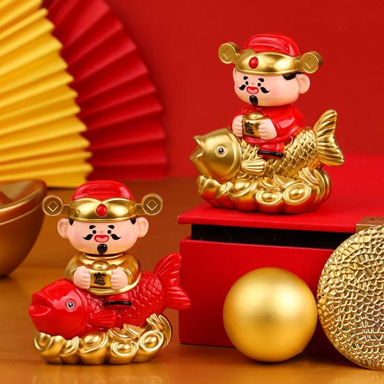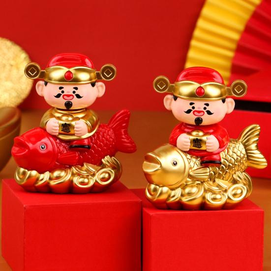 Орнамент бога богатства представлен в двух ярких стилях — золотой карп и красный карп — идеально дополняющих различные темы декора.. Этот очаровательный улыбающийся Бог Богатства сочетает в себе праздничные красные и золотые оттенки, добавляя радостный, но элегантный штрих, подходящий для молодых семей..