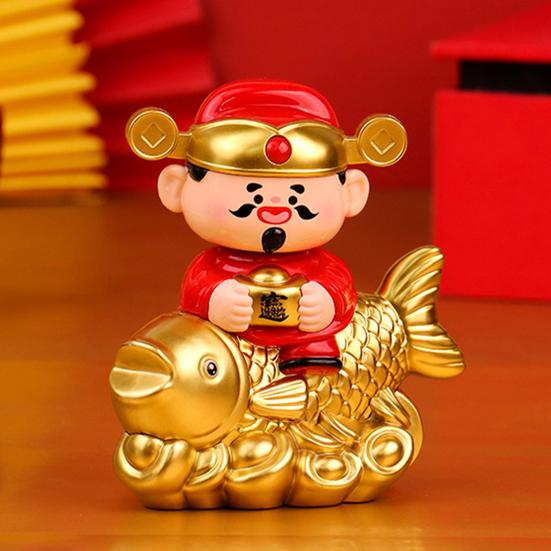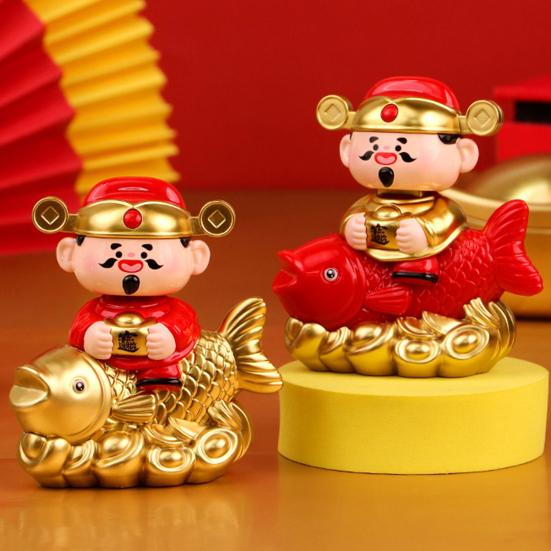 Функциональный символизм: Эта фигурка, изображающая улыбающегося Бога Богатства в паре с ярким карпом, воплощает двойное благоприятное значение процветания и удачи.. Он служит не только декоративным элементом, но и значимым талисманом для привлечения положительной энергии в ваш дом или офис.