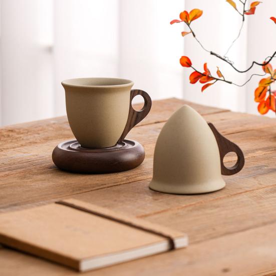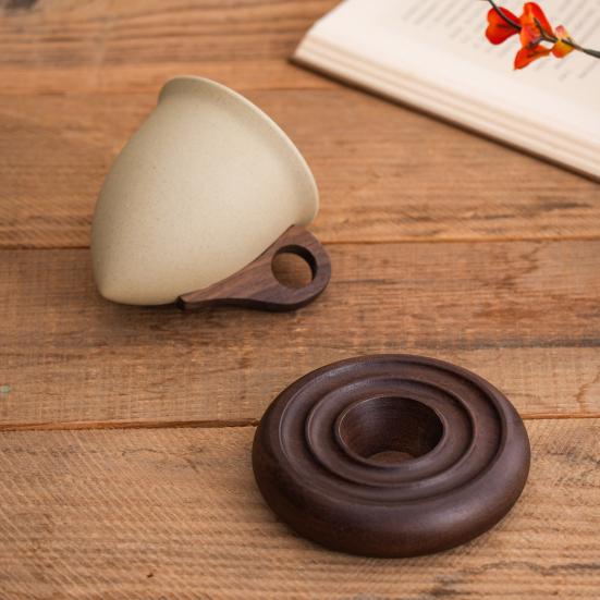 Оцените идеальное сочетание стиля и функциональности с этой конусообразной кофейной кружкой с эргономичной ручкой из массива дерева, которая обеспечивает удобный, термостойкий захват..