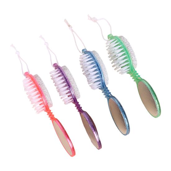 Многофункциональный инструмент для ухода за ногами: Это универсальное устройство сочетает в себе доску для пилинга стоп с твердой пемзой, наждачной бумагой и чистящей щеткой.. Эффективно удаляет твердую, мертвую кожу и кутикулу, разглаживая шероховатые участки.. Щетка очищает от грязи и мягко отшелушивает, способствуя здоровью и мягкости ног благодаря комплексному уходу в одном компактном инструменте.