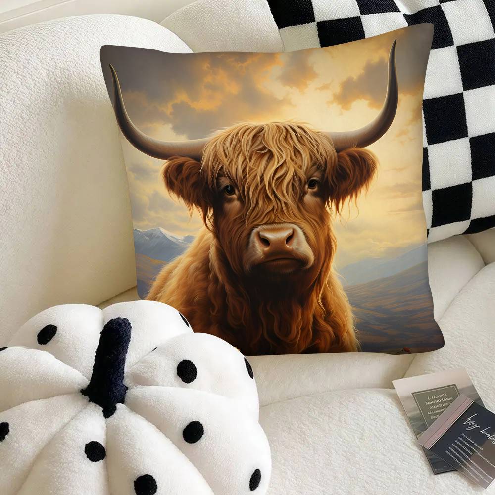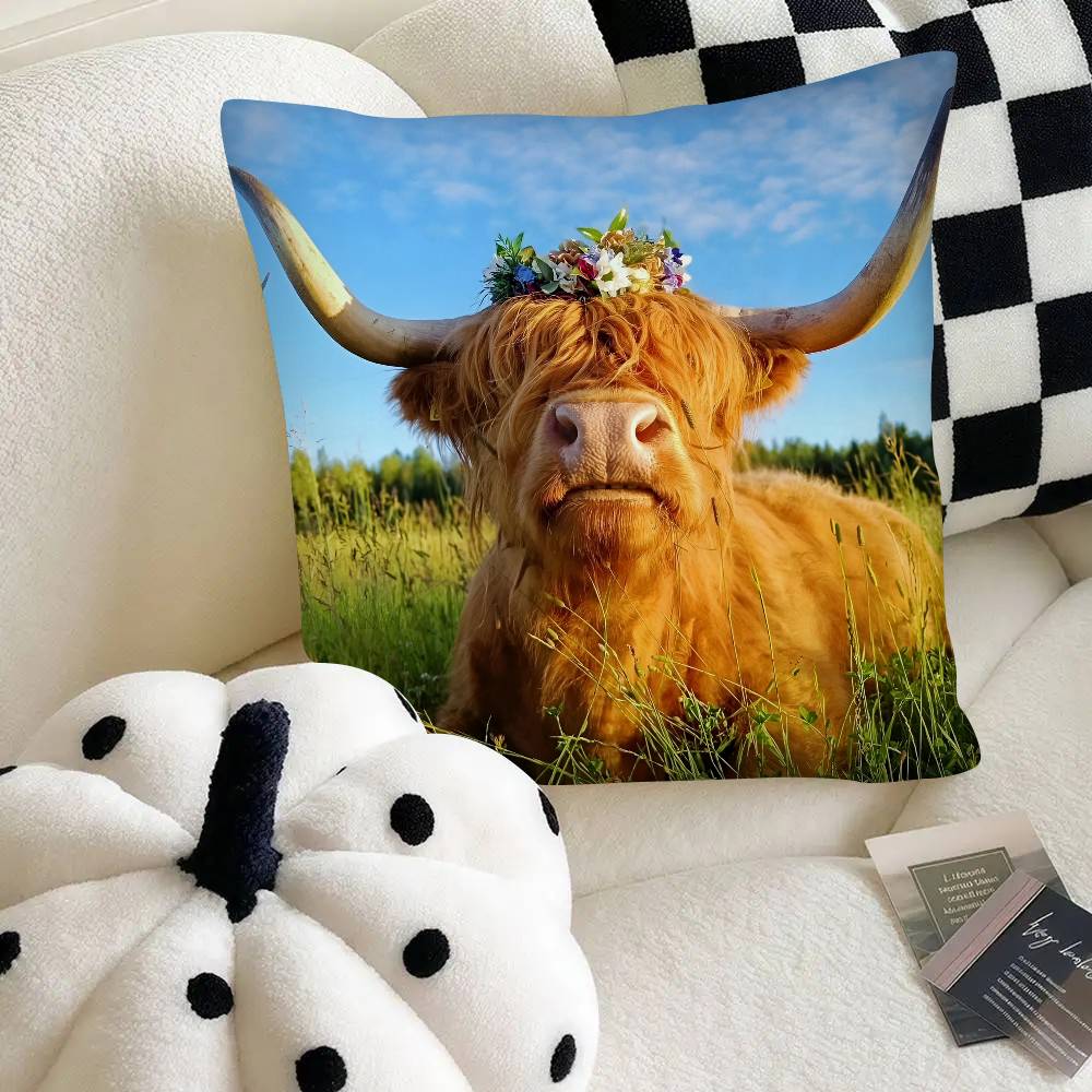 Наволочка для подушки с шотландской коровой Модная квадратная наволочка Спальня Диван Комната Ins Декор Отдых