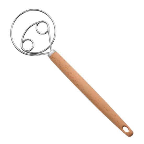Премиальные материалы для долговечности и комфорта: Этот мукомес, изготовленный с высококачественными дубовыми ручками и смесительными кольцами из пищевой нержавеющей стали, отличается прочной и долговечной конструкцией.. Гладкая деревянная ручка обеспечивает удобный захват, снижая усталость рук во время длительных сеансов перемешивания.. Его устойчивая к ржавчине нержавеющая сталь обеспечивает легкий уход, что делает его идеальным для частого использования на любой кухне.